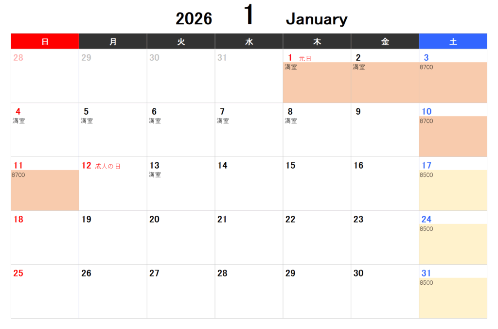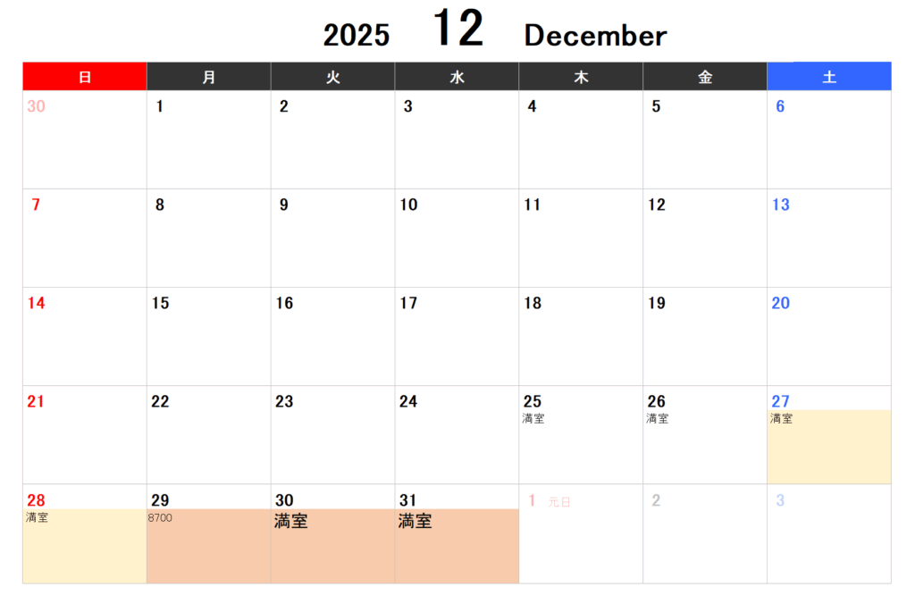 2025年12月~宿泊料金12月からのご予約は9月1日からとなります